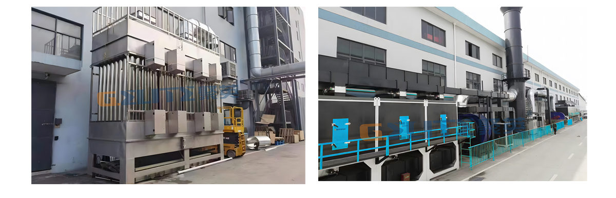 橡膠廢氣主要產生工藝是塑煉,混煉,壓延,擠出,成型,硫化,廢氣主要來源是膠漿制備,涂膠,浸膠,煉膠,硫化廢氣,廢氣特點低濃度,大風量,成分復雜,有含硫廢氣。設計前端采用綜合除塵工藝末端配套催化燃燒(CO)進行廢氣凈化治理。