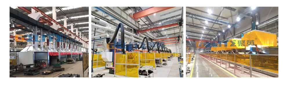 針對人工固定的焊接崗位和多工位的焊接工藝,可以采用多工位集中煙塵凈化治理,根據固定點位的不同焊接形式(點、線、面等),前端可采用吸氣臂、吸氣罩和房體進行收集,達到集中治理的目的,產品整體設計美觀,車間占地面積小,可隨意組合更大風量。
