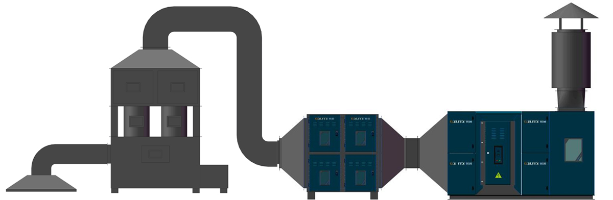 前端收集 旋流塔降溫除塵 工業靜電除油霧 UV光催化凈化