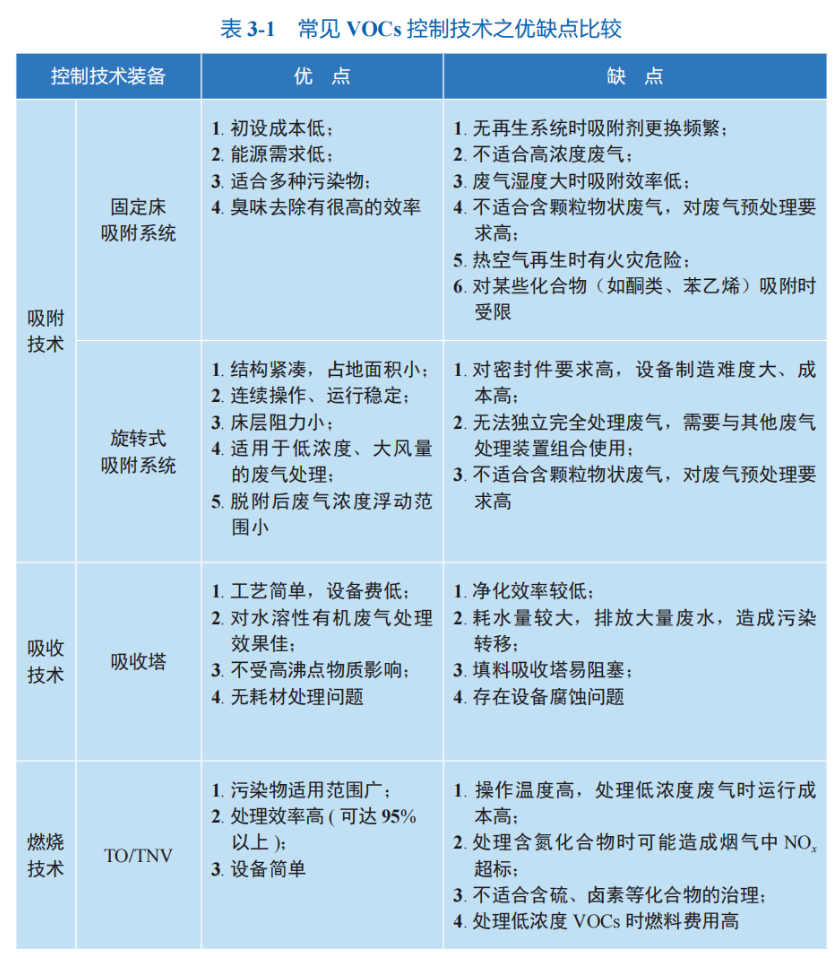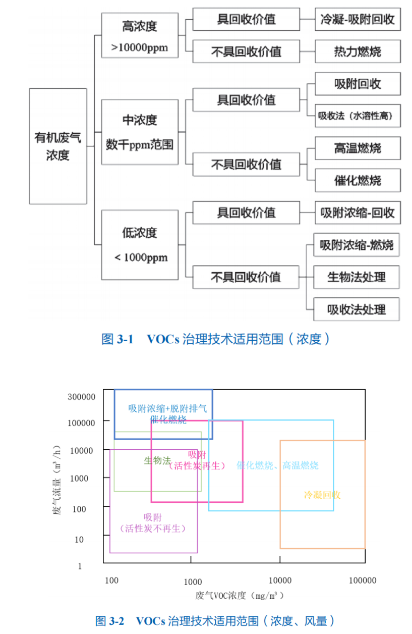 生態環境部大氣司《揮發性有機物治理實用手冊》中明確:實用的VOCs末端治理技術眾多,主要包括吸附、燃燒(高溫焚燒和 催化燃燒)、吸收、冷凝、生物處理及其組合技術。