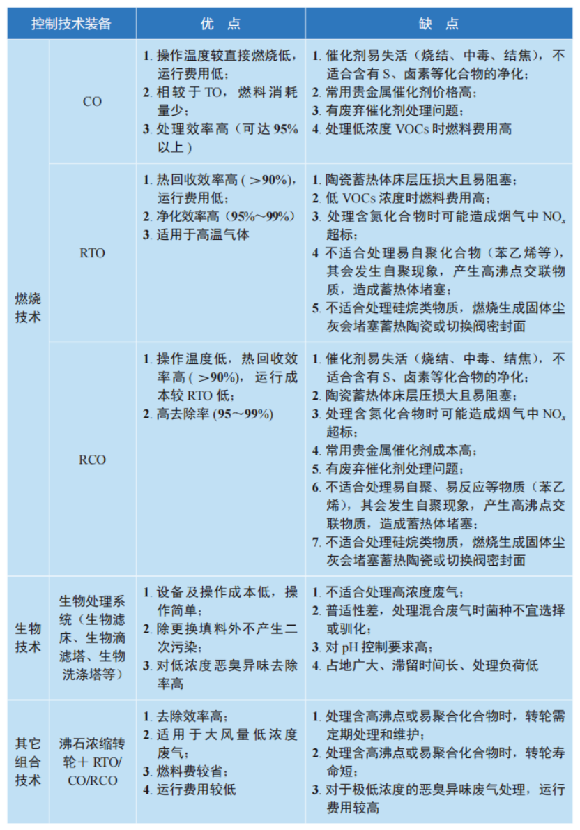 各類技術都有其一定的適用范圍,其對廢氣組分及濃度、溫度、濕度、風量等因素有不同要求,因此企業在選用治理技術時,應從技術可行性和經濟性多方面進行考慮。