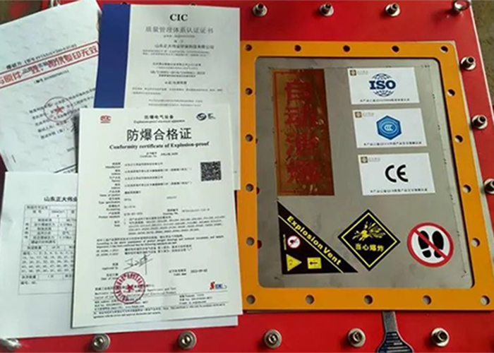 6、泄爆膜片——采用專業(yè)泄爆膜片裝置,設(shè)備內(nèi)部產(chǎn)生爆炸時(shí),它能夠在規(guī)定的溫度和壓力下爆破,泄放壓力,保護(hù)承壓設(shè)備的安全和操作人員的生命安全,以及避免使用的環(huán)境出現(xiàn)更大的損傷,泄爆膜片的爆破壓力為0.01Mpa,有專門的證書標(biāo)識(shí)卡。